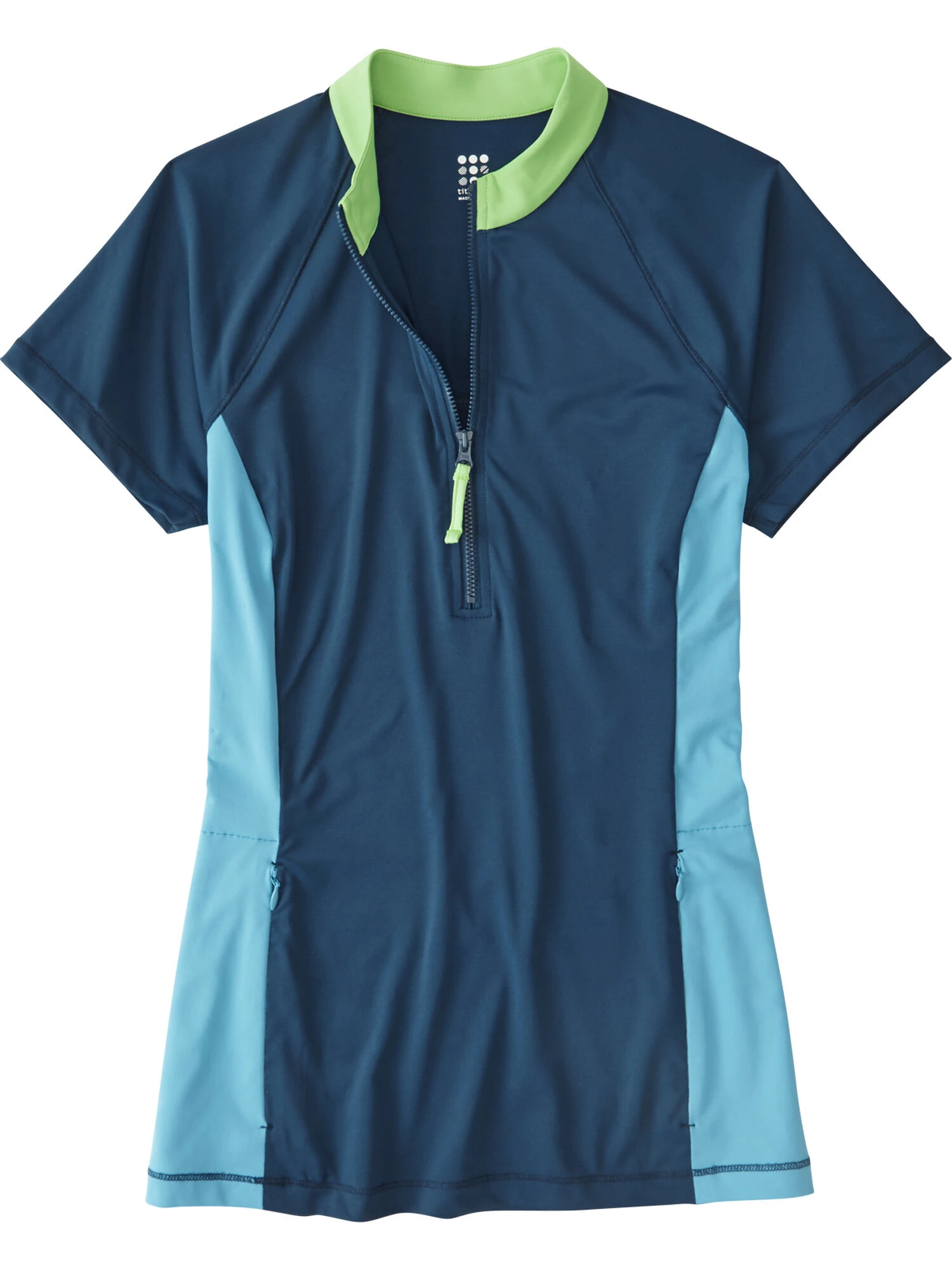 Better than sunscreen. Kills UV rays while waiting for the next big set or chillin’ post-session. Our new sun shirt fabric is densely knit to keep us cool and deliver UPF 50, and still dries faster than traditional sunshirts – now with a slightly updated and improved fit! To make sure we are truly comfortably play all day, no matter what the conditions. Mock neck, half zip. By Title Nine. XS(2), S(4-6), M(8-10), L(12-14), XL(16).